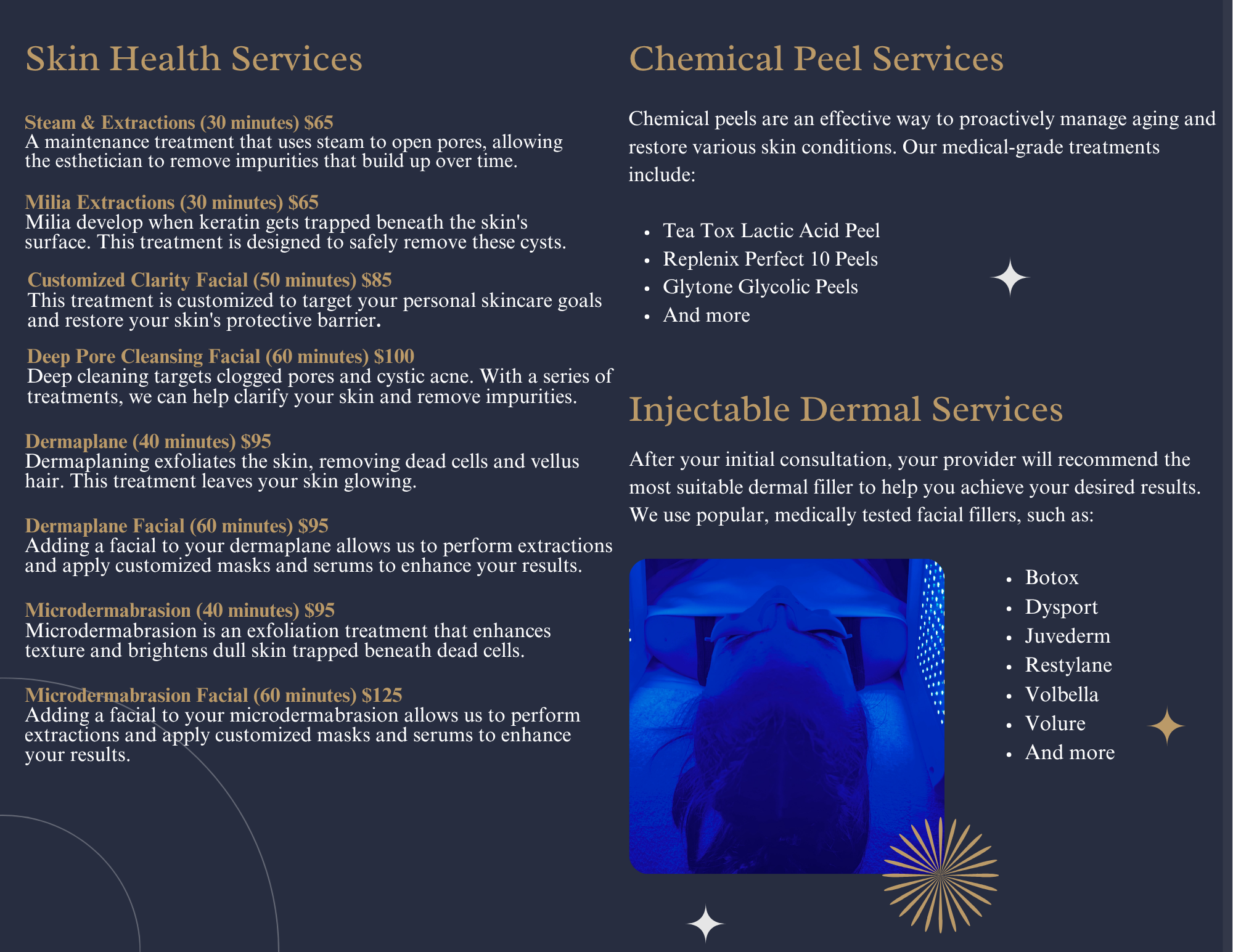 Specialty: Medical Esthetician, Hair Laser, Medical-grade Chemical Peels, Microneedling
